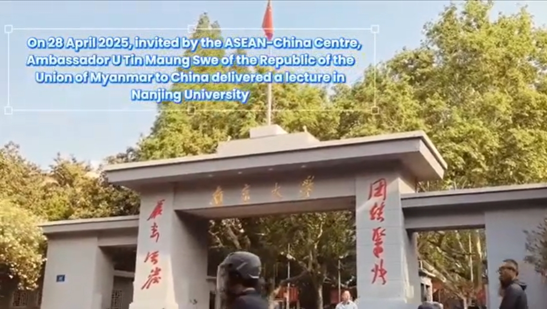 จาก 28 ถึง 30 เมษายน 2568, โครงการเรือธง ASEAN-China Center (ACC) 'ชุดการบรรยายใน ASEAN-จีนความสัมพันธ์ ' ประสบความสำเร็จในหนานจิงมณฑลเจียงซู เอกอัครราชทูต U Tin Maung Swe แห่งสาธารณรัฐสหภาพพม่าไปยังประเทศจีนส่งการบรรยายในมหาวิทยาลัยหนานจิงซึ่งได้รับการต้อนรับอย่างอบอุ่นจากผู้ชม เลขาธิการ Shi Zhongjun แห่ง ACC เข้าร่วมและกล่าวถึงผู้ชม ในระหว่างการเยี่ยมชมในเจียงซูคณะผู้แทนได้รับการรับอย่างอบอุ่นจากรองผู้ว่าราชการฝางเหว่ยแห่งมณฑลเจียงซู คณะผู้แทนได้เข้าเยี่ยมชมองค์กรที่มีเทคโนโลยีสูงในภาคอินเทอร์เน็ตพลังงานของจีน บริษัท เครื่องจักรกลการเกษตรชั้นนำและเมืองฟื้นฟูชนบทเพื่อให้ได้รับความเข้าใจในเชิงลึกเกี่ยวกับการพัฒนาของการผลิตขั้นสูงอุตสาหกรรมไฮเทคและอุตสาหกรรมท้องถิ่นที่มีลักษณะเฉพาะในประเทศจีน